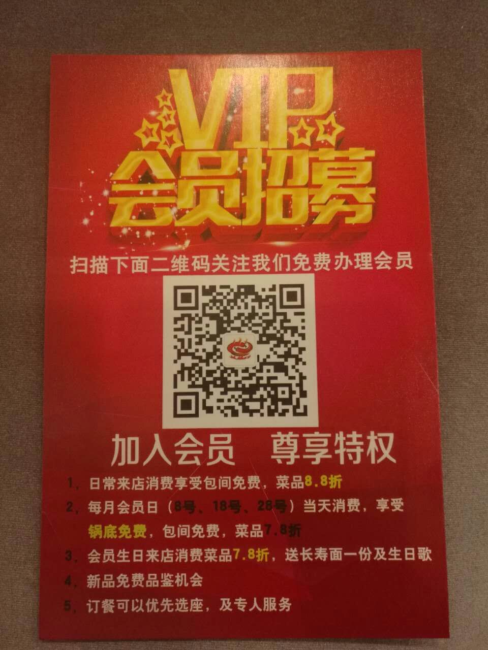 優(yōu)惠促銷:巴蜀印象會員掃描二維碼免費注冊,每月8、18、28日為我們的會員日,(鍋底免費,菜品7.8折)