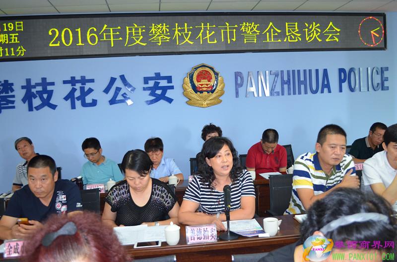市人民政府副市長、公安局黨委書記、局長殷旭東,市政協(xié)副主席、工商聯(lián)主席吳文發(fā),市公安局黨委委員、副局長胡世明、樊澤鳳、李國宏以及市工商聯(lián)黨組成員、副主席謝宇等領(lǐng)導(dǎo)出席警企懇談會(huì)。