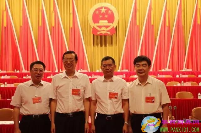 市委書記張剡、市長李建勤、市人大常委會主任謝道全、市政協(xié)主席單榮合影留念
