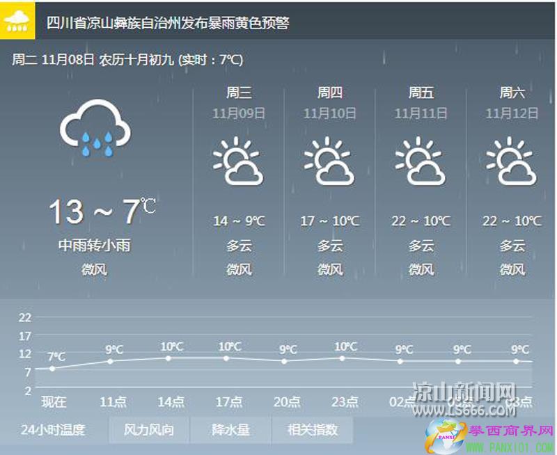 涼山州氣象局發(fā)布強降溫降雨重要天氣預報,受強冷空氣影響,預計6日晚到9日白天,涼山州州有一次強降溫降雨天氣過程。