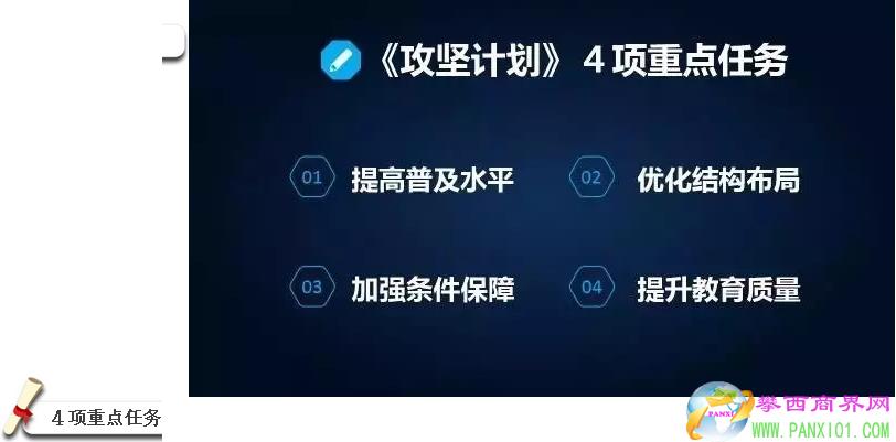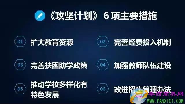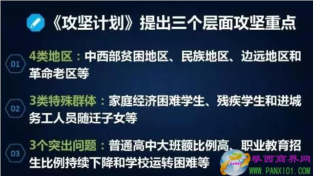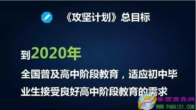 重點(diǎn)是提高教育基礎(chǔ)薄弱特別是高中階段教育毛入學(xué)率較低地區(qū)的普及程度,提高特殊群體接受高中階段教育的機(jī)會(huì),解決有學(xué)上的問(wèn)題。