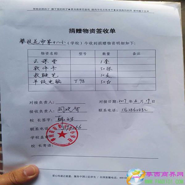攀西商界網(wǎng)(攀枝花市工商聯(lián)經(jīng)濟聯(lián)絡(luò)部 陳忠榮)4月19日,由省工商聯(lián)、省光彩會、省老促會、明日之星教育基金會和四川山東商會等單位共同發(fā)起的“班班通助力教育信息化——四川省光彩事業(yè)行”來到攀枝花市西區(qū),在市第十八小學(xué)校開展精準(zhǔn)扶貧捐贈活動。