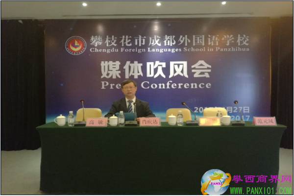 攀西商界網(wǎng) ( 熊麗萍) 今日(27日)上午,攀枝花市成都外國語學校召開專場媒體吹風會,全市14家媒體、市教體局、東區(qū)宣傳部、東區(qū)教育局領導應邀參會,攀枝花市教育體育局政策法規(guī)與民辦教育科科長王影、攀枝花市東區(qū)教育局局長范元鳳分別致辭,攀枝花市成都外國語學校肖慶達校長就學校的籌備進度、辦學理念及2017年招生政策等大家關(guān)心的問題進行了解答。