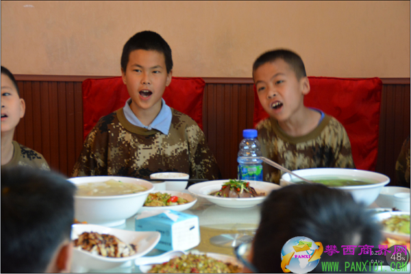 經(jīng)過了一上午的摸爬滾打,孩子們的“飯前一支歌”依舊歌聲嘹亮