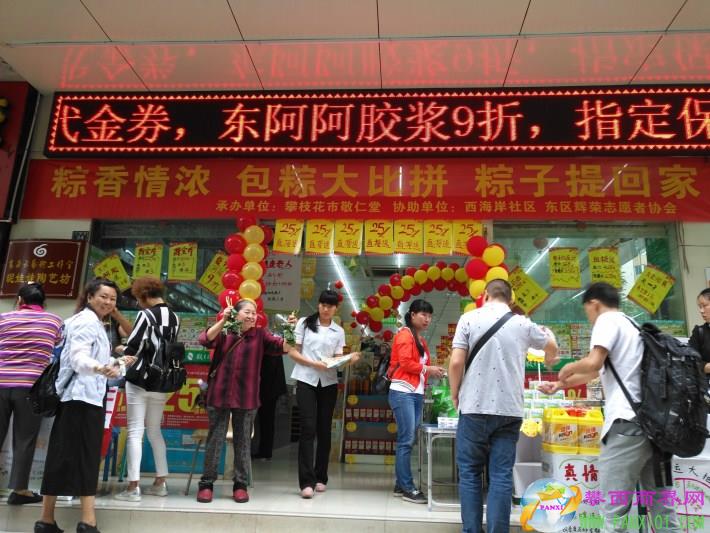攀西商界網(wǎng)(杜美明)5月27日上午8:30由西海岸社區(qū)和東區(qū)輝榮志愿者協(xié)會策劃,攀枝花市敬仁堂承辦的粽香情濃,包總大比拼,粽子提回家的公益活動在敬仁堂西海岸社區(qū)店熱烈開展,活動吸引了眾多熱心公益的社會人士參與并給空巢老人送去了濃濃情意。