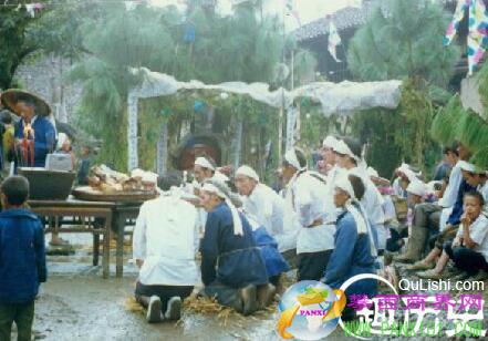 這天是喪期中最熱鬧的一天。凡是來參加喪葬的人都定在這天到齊,祭品也是這天送來。奔喪者多以一個家支或村寨為單位,客人中有提酒的,牽牛羊的,還有懸舉著祭帳的。臨近了人人都得大哭一場。之后勸誡家屬節(jié)哀,主方則就地用酒給他們洗塵,簡要介紹死因及生平事跡,然后統(tǒng)一安排食宿。