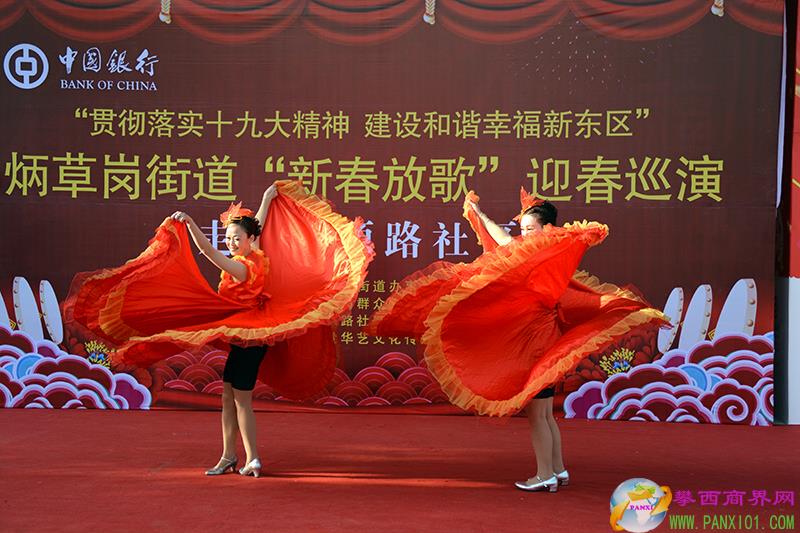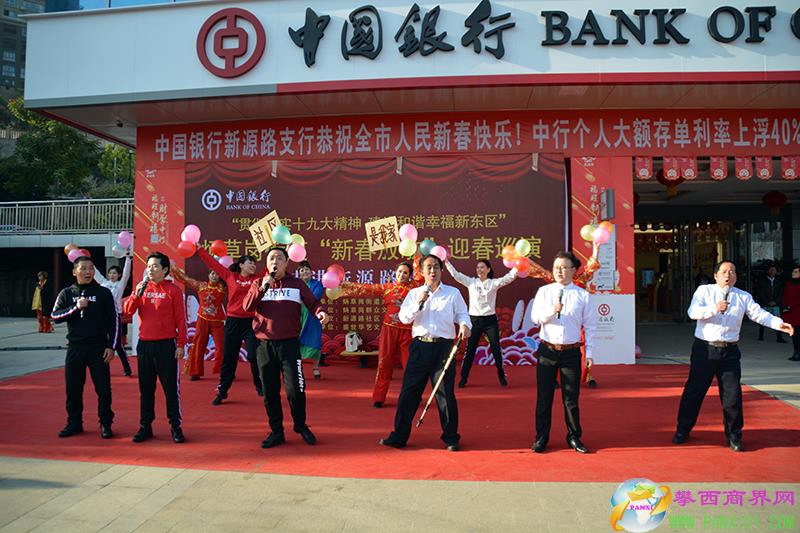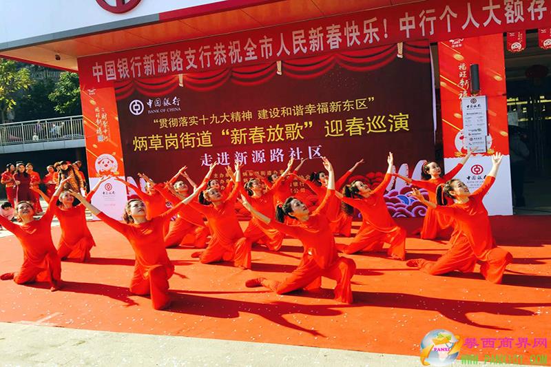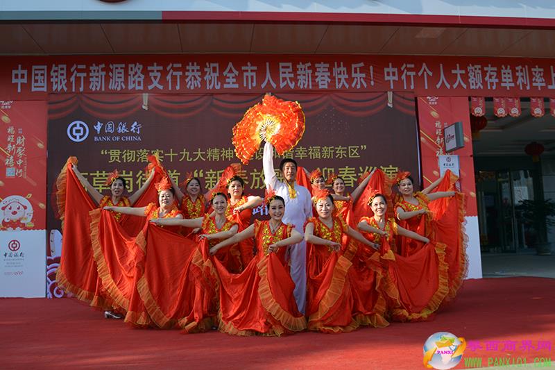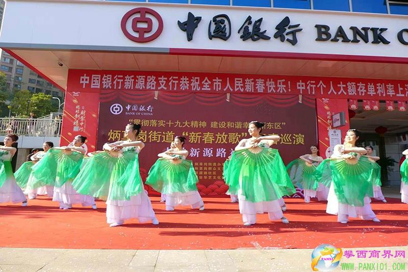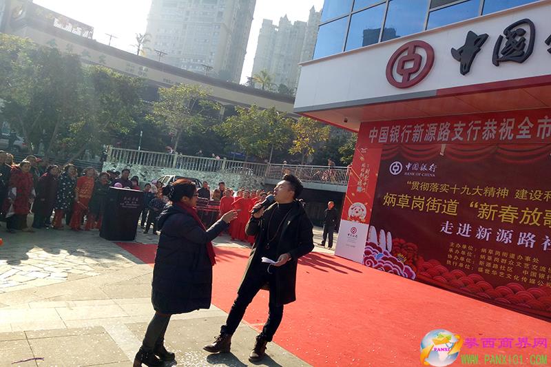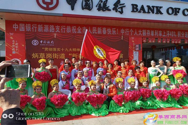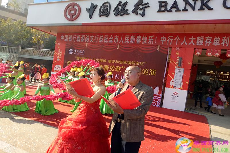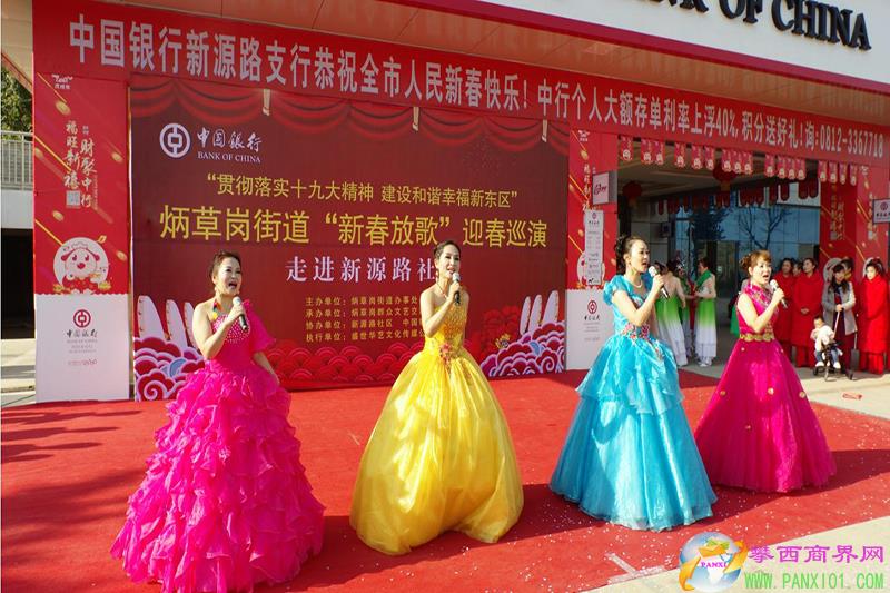 攀西商界網(董新春 張銘九)1月20日,由炳草崗街道辦事處主辦、炳草崗群眾文藝交流協(xié)會承辦、新源路社區(qū)、中國銀行攀枝花分行協(xié)辦的《新春放歌》第四屆迎春巡演在新源路社區(qū)中國銀行新源路支行大門口首場開演。