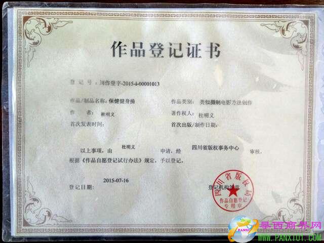 2015年7月,杜明義的自創(chuàng)保健健身操在省版權局獲得了作品登記證書。