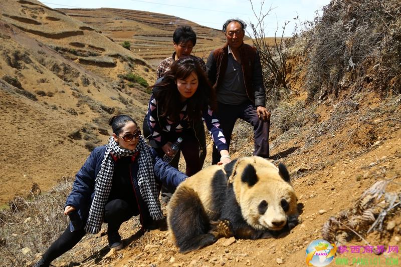 但是,大熊貓并不理會村民的好意,看到人多,似乎有些慌,在山坡上亂竄,還打滾,弄得滿身是泥。實(shí)在沒辦法,村民只得找來兩條繩子,在不傷到大熊貓的情況下,好不容易才用繩子將它拴住。
