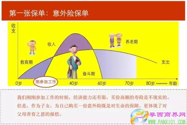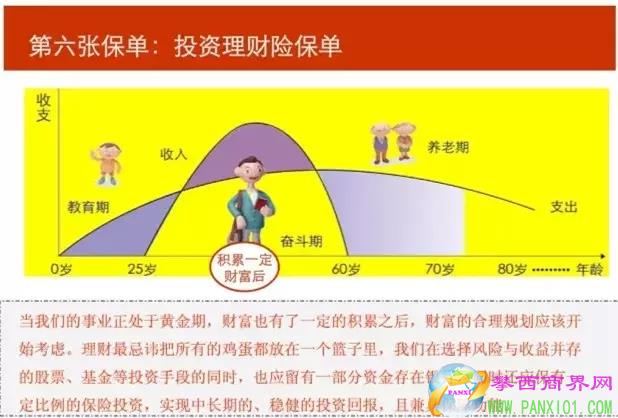 意外、重疾、養(yǎng)老、子女教育等等問題乃是人生最基本的也是難以回避的問題。在人一生中不同的階段,會(huì)面臨不同的財(cái)務(wù)需求和風(fēng)險(xiǎn),而在各種金融工具中,保險(xiǎn)可以起到風(fēng)險(xiǎn)化解和財(cái)務(wù)保障的作用。綜合分析來看,從出生到終老,人的一生之中至少需要六張不同的保單,才能做到最基礎(chǔ)的保障。
