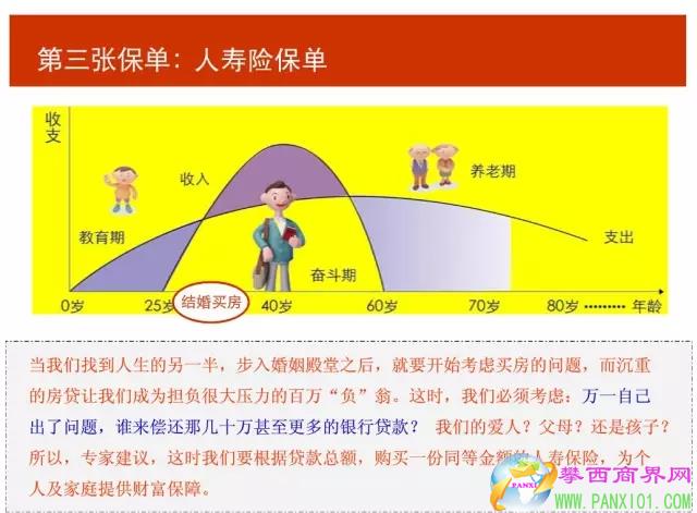貨款買房、買車,都市里的“負(fù)翁”越來越多,背著貸款的日子過得有滋有味,也有壓力:萬一自己出了問題,誰來還那幾十萬甚至上百萬的銀行貸款?為了把這一風(fēng)險(xiǎn)轉(zhuǎn)移出去,應(yīng)該增加一張壽險(xiǎn)保單。只要人還活著、還健康,就代表著財(cái)富能源源不斷被創(chuàng)造出來,保障了人本身就是保障了他的財(cái)富。此外,人壽保單還有避債和避稅的功能,人即便不存在了,保險(xiǎn)金可以不受債務(wù)糾紛以及收稅的困擾,從而實(shí)現(xiàn)財(cái)富的順利傳承。