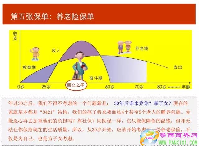 30年后誰來養(yǎng)你?這是步入中年的人群不得不考慮的問題。當(dāng)我們?cè)絹碓搅?xí)慣于高質(zhì)量的生活方式時(shí),是否想到未來的生活水準(zhǔn)可能會(huì)一落千丈?很多城市居民都只有一個(gè)孩子,當(dāng)未來出現(xiàn)兩個(gè)孩子負(fù)擔(dān)四個(gè)老人的局面時(shí),對(duì)孩子無疑也是一種巨大的壓力。規(guī)劃自己的養(yǎng)老問題,是對(duì)自己和兒女負(fù)責(zé)的體現(xiàn)。在能賺錢的年齡考慮養(yǎng)老是必要的,也是不可回避的。在資金允許的情況下,應(yīng)考慮買一份養(yǎng)老保險(xiǎn)。養(yǎng)老保險(xiǎn)兼具保障與理財(cái)功能,又可以抵御一部分通貨膨脹的影響。而且養(yǎng)老保險(xiǎn)應(yīng)當(dāng)盡早購買,買得越早,獲得的優(yōu)惠越大。