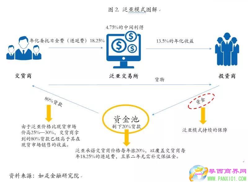 在交易所非法集資案件中,涉案規(guī)模和影響最大的是昆明泛亞有色金屬交易所。昆明泛亞通過金屬現(xiàn)貨投資和貿易平臺,自買自賣,操控平臺價格,維持泛亞的價格比現(xiàn)貨市場價高25%—30%,每年上漲約20%,制造交易火爆的假象,然后借此包裝所謂“日金寶”等誘人的高收益產品。但實際上每年漲價20%只是為了讓泛亞的價格永遠高于現(xiàn)貨市場價格,因此也永遠不會有真正的買方,并沒有帶來實際增量資金;而交貨商也因此不需補交保證金,投資者年化13.5%的日金寶理財收益,都是自己的本金或者新增投資者的本金。當新增資金放緩或者停止進入時,整個體系就會崩盤,投資者基本血本無歸。泛亞模式就是利用新投資人的錢來向老投資者支付委托日金費和短期回報,制造賺錢的假象進而騙取更多的投資。2015年12月,昆明泛亞兌付危機爆發(fā),涉及28個省份的22萬人,非法集資金額總計超過430億元,上千名泛亞投資者聚集在證監(jiān)會門口集會抗議。