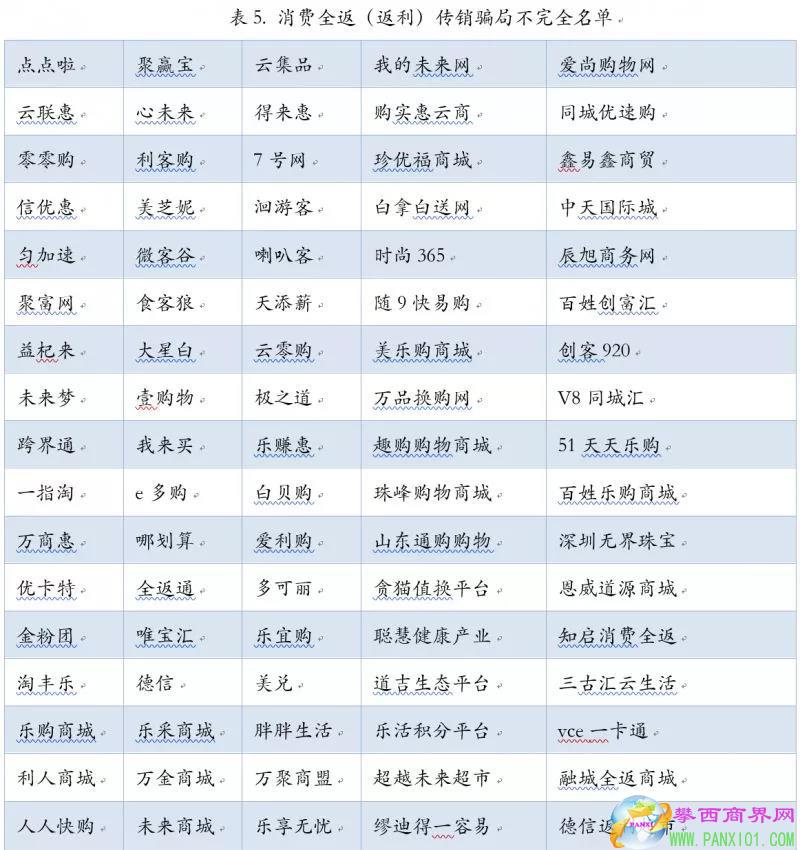 消費返利原本是一項常見的促銷手段,如今卻經常被包裝成投資騙局。其主要特征是:通過互聯(lián)網第三方平臺介入商家和消費者的交易過程,許諾在平臺的消費額度部分返回,或通過現(xiàn)金消費送等額積分等形式,誘導消費者注冊會員消費和商家加盟平臺回流貨款。截至2017年7月,已有150余家“消費返利”傳銷騙局名單被央視曝光。