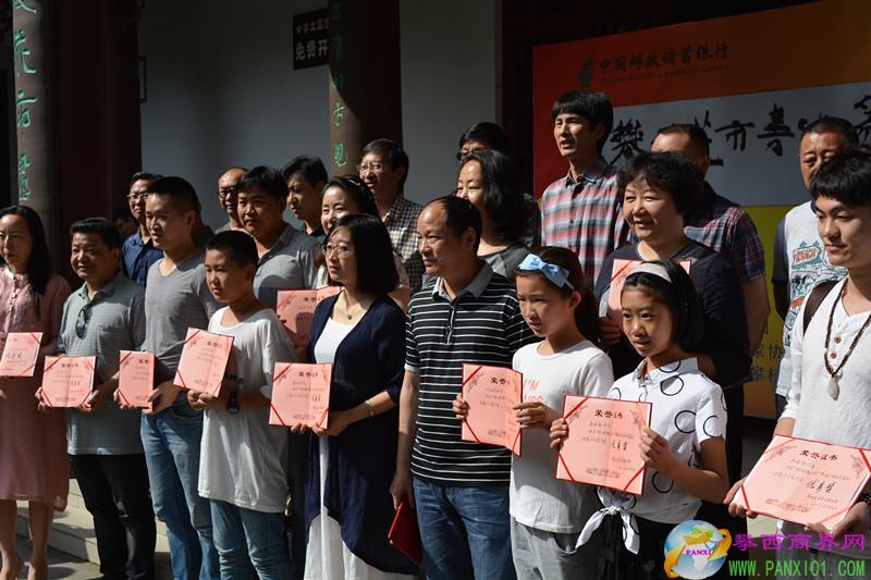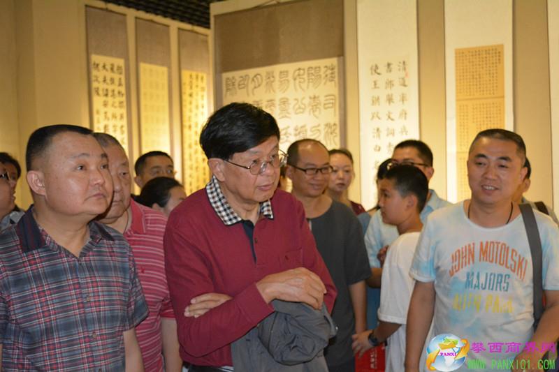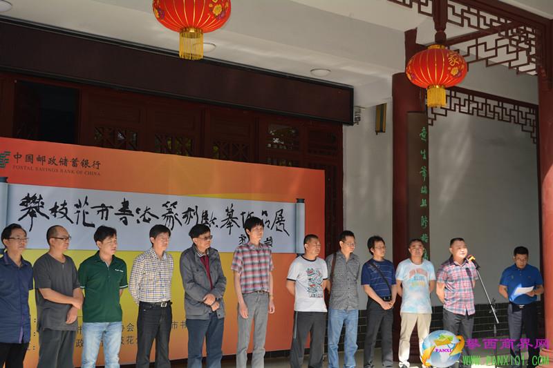 中國(guó)書(shū)法家協(xié)會(huì)顧問(wèn)、四川省書(shū)法家協(xié)會(huì)主席何應(yīng)輝(中);攀枝花市政府秘書(shū)長(zhǎng)、市書(shū)法家協(xié)會(huì)副主席徐明義;攀枝花市文聯(lián)黨組書(shū)記、主席李平;攀枝花市書(shū)法家協(xié)會(huì)主席劉?。慌手ㄊ朽]政儲(chǔ)蓄銀行行長(zhǎng)曾斌出席開(kāi)幕式。