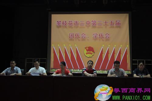 4月14日,攀枝花市三中第三十五屆團員代表、學(xué)生代表大會在學(xué)校圖書館演播廳召開。學(xué)校黨委顧曉明書記、宋玉霞副校長、德育科線鵬科長、陳峰烽副科長,高2017屆高俊鵬副主任,團委蔣旭玲、宋夏蓉、李曉和老師出席會議。
