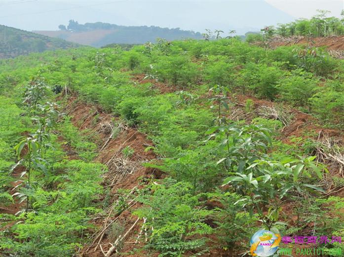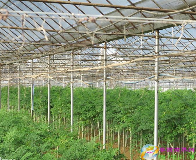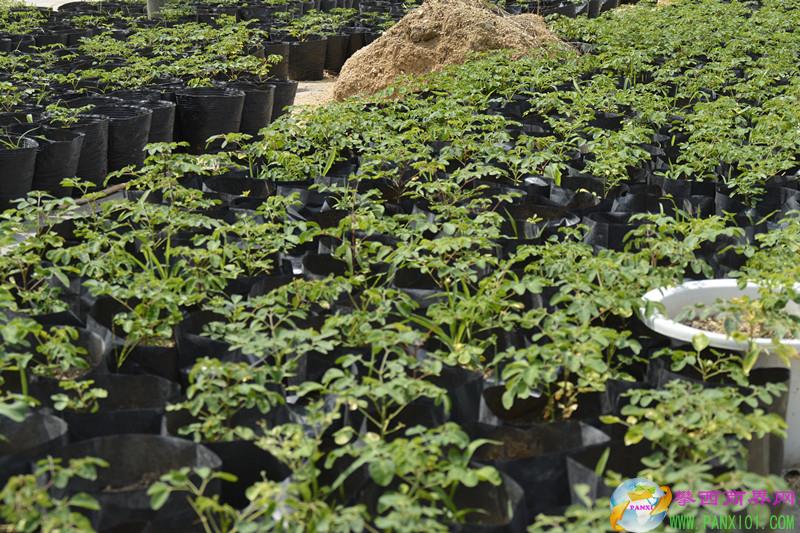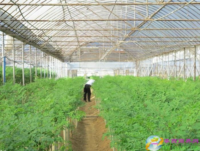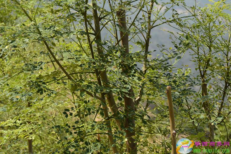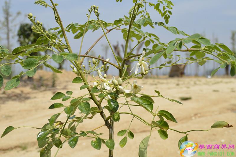 這里種植有大片辣木林,還有辣木盆景。有的盆景辣木樹很小就已經(jīng)開花了。