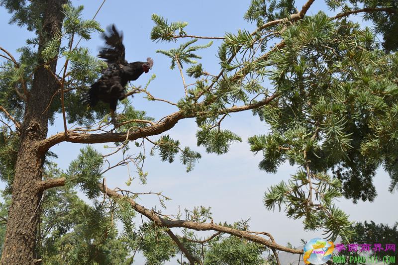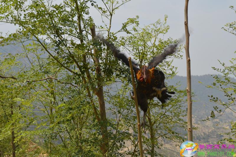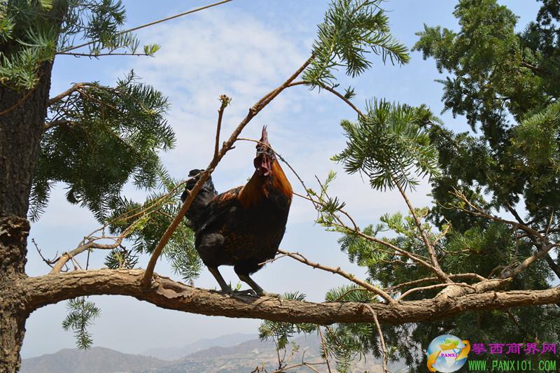 筆者好奇,第二天跟隨趙兵來到了攀枝花市仁和區(qū)總發(fā)鄉(xiāng)五桂塘辣木生態(tài)養(yǎng)雞場。這里的雞看到陌生人來,嚇得飛上了樹梢;還有的雞干脆趴在辣木樹上吃著辣木樹葉,看到人來了,趕緊從樹上飛下來。
