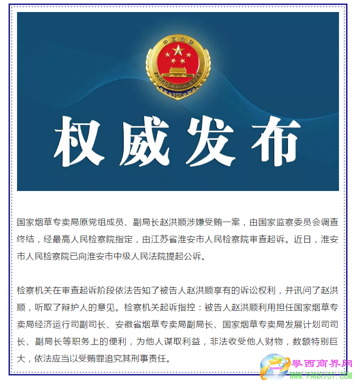 國(guó)家煙草專賣局原副局長(zhǎng)趙洪順涉嫌受賄被依法決定逮捕