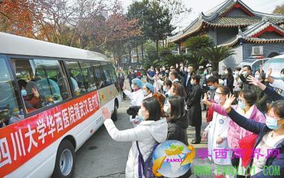 第九批 第十批醫(yī)療隊川大華西醫(yī)院的醫(yī)生出發(fā)現(xiàn)場。2月21日下午,四川省第九批第十批援助湖北醫(yī)療隊在成都完成集結(jié),一同啟程出征。四川在線記者何海洋攝