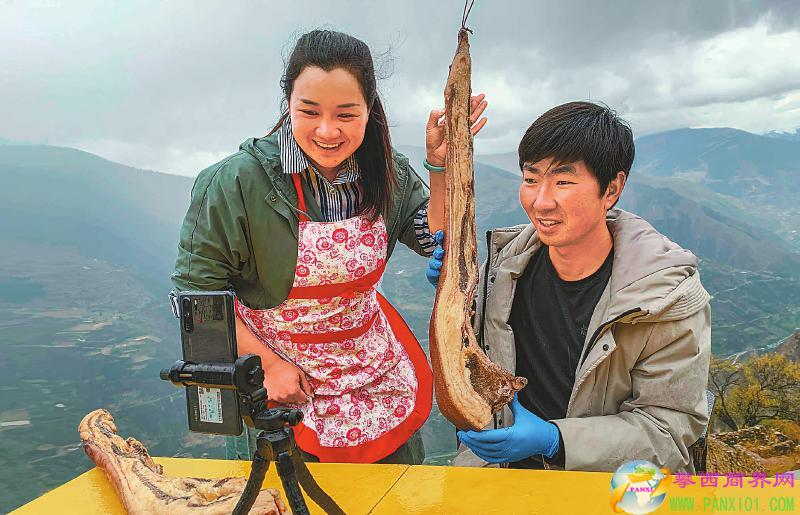 “粉絲們好,我身后是美麗的阿壩州小金縣美興鎮(zhèn)甘家溝村,我手里拿的是我們村上老鄉(xiāng)家自產(chǎn)的資格四川老臘肉。純糧喂出來(lái)的黑毛豬,純手工煙熏火燎制作,你是吃一口想二口。”5月15日,正在手機(jī)鏡頭前直播賣臘肉的是甘家溝村第一書記張飛,今年34歲的他已經(jīng)來(lái)這里扶貧4年了。
