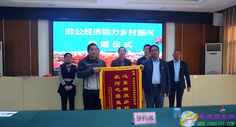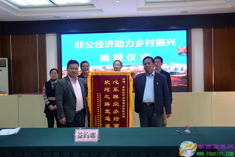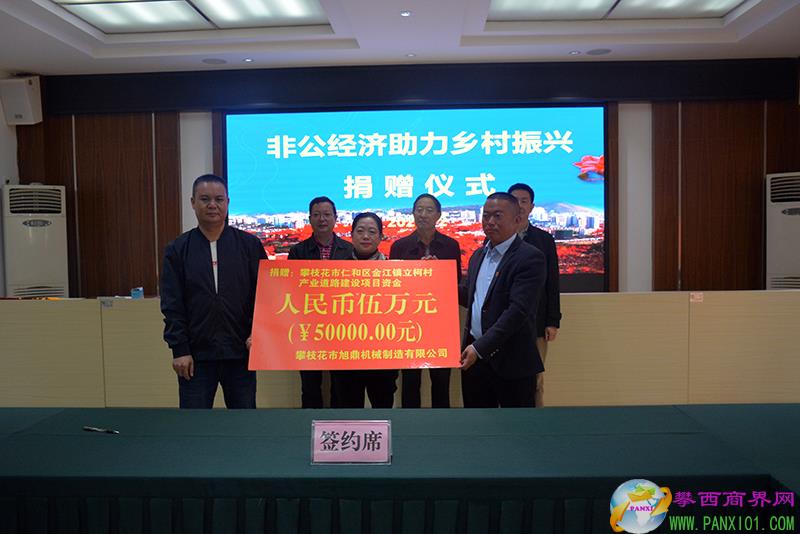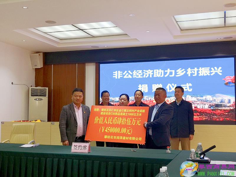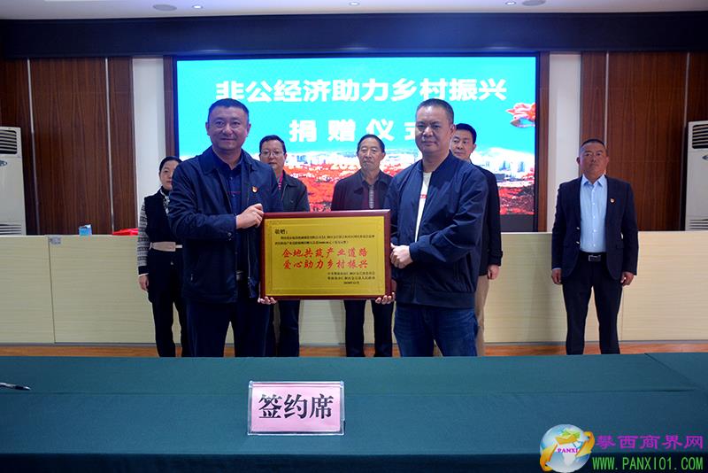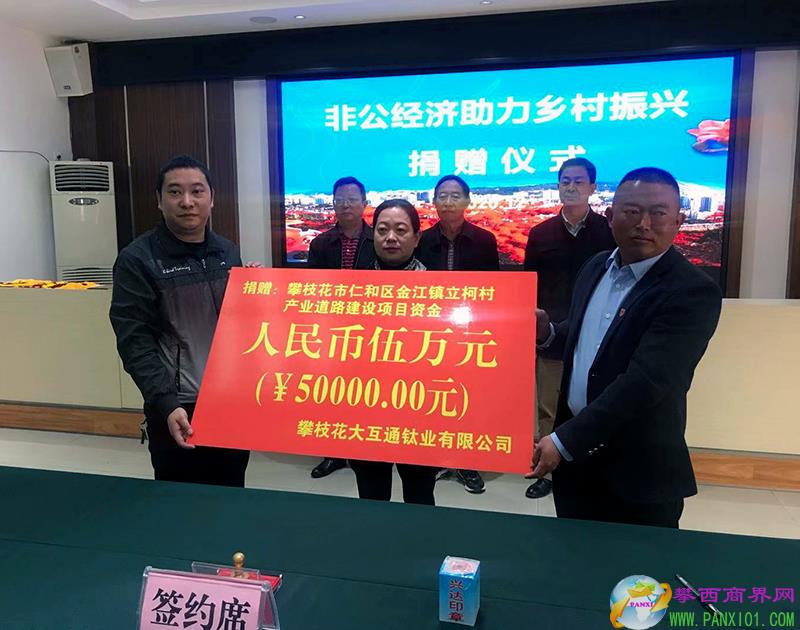 攀西商界網(wǎng)報道(記者 熊毅)產(chǎn)業(yè)要發(fā)展,企業(yè)來鋪路。12月11日,在釩鈦高新區(qū)(釩鈦新城)管委會、市工商聯(lián)及各相關(guān)部門的積極推動下,仁和區(qū)金江鎮(zhèn)非公經(jīng)濟(jì)助力鄉(xiāng)村振興公益捐贈儀式在釩鈦高新區(qū)(釩鈦新城)管委會舉行。當(dāng)天,轄區(qū)潤澤建材、大互通鈦業(yè)、旭鼎機(jī)械3家民營企業(yè)通過四川省扶貧基金會攀枝花市分會向金江鎮(zhèn)立柯村麥沖灣組捐贈共計55萬余元的物資及現(xiàn)金,擬對該村民小組1.8公里產(chǎn)業(yè)道路進(jìn)行硬化。