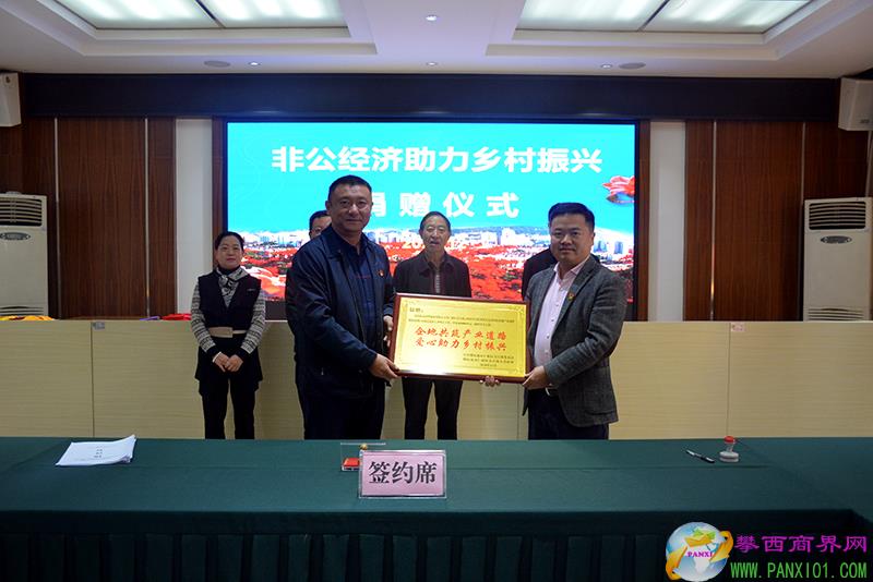 仁和區(qū)金江鎮(zhèn)黨委副書記、鎮(zhèn)長曾鵬分別向愛心企業(yè)回贈牌匾。