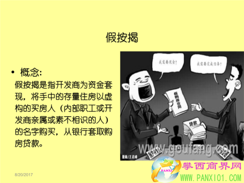 “假按揭”是指開發(fā)商為套現(xiàn),將手中存量住房以虛構的買房人名字購買,從銀行套取購房貸款。由于“假按揭”對銀行按揭業(yè)務危害巨大,因此,監(jiān)管機構對銀行涉及“假按揭”方面的違規(guī)行為均采取從重處理,除了對涉事銀行開出罰單外,也對相關工作人員處以“禁止從事銀行業(yè)工作”的處罰。