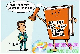 (十六)把制度的籠子扎得更緊更牢,推進(jìn)監(jiān)督工作規(guī)范化。黨委(黨組)要堅持用制度管權(quán)管事管人,健全任職回避、定期輪崗、干部交流制度,對“一把手”制定更嚴(yán)格的管理制度。堅持和完善領(lǐng)導(dǎo)干部報告?zhèn)€人有關(guān)事項制度,推進(jìn)“一把手”個人有關(guān)事項在領(lǐng)導(dǎo)班子中公開工作。健全干部雙重管理制度,明確主管方、協(xié)管方對雙重管理干部的監(jiān)督職責(zé)。
