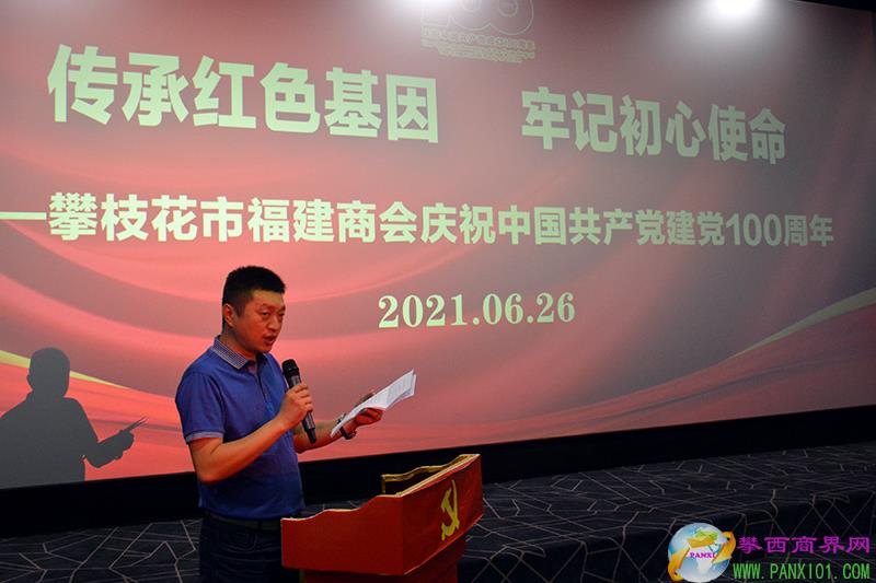 攀西商界網(wǎng)報道(記者 熊毅)6月26日,攀枝花市福建商會慶祝建黨一百周年黨史學習教育主題活動在攀枝花影城二樓主題影廳舉行,回顧黨的光輝歷程,謳歌黨的豐功偉績,總結商會工作和成績,展望商會發(fā)展新篇章。
