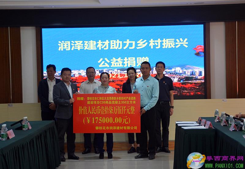 市鄉(xiāng)村振興局黨組成員、副局長(zhǎng)鄒明、市工商聯(lián)副主席陳忠榮、仁和區(qū)政協(xié)副主席、工商聯(lián)主席游明甫與仁和區(qū)鄉(xiāng)村振興局、仁和區(qū)工商聯(lián)、金江鎮(zhèn)和大龍?zhí)多l(xiāng)領(lǐng)導(dǎo)以及釩鈦新城有關(guān)部(局)負(fù)責(zé)人一道見(jiàn)證了潤(rùn)澤建材助力鄉(xiāng)村振興的善舉。