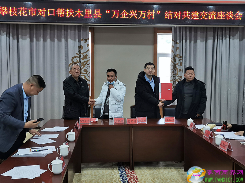 在木里縣全季酒店二樓會議室,攀木雙方召開了“攀枝花市對口幫扶木里縣‘萬企興萬村’結(jié)對共建交流座談會”。