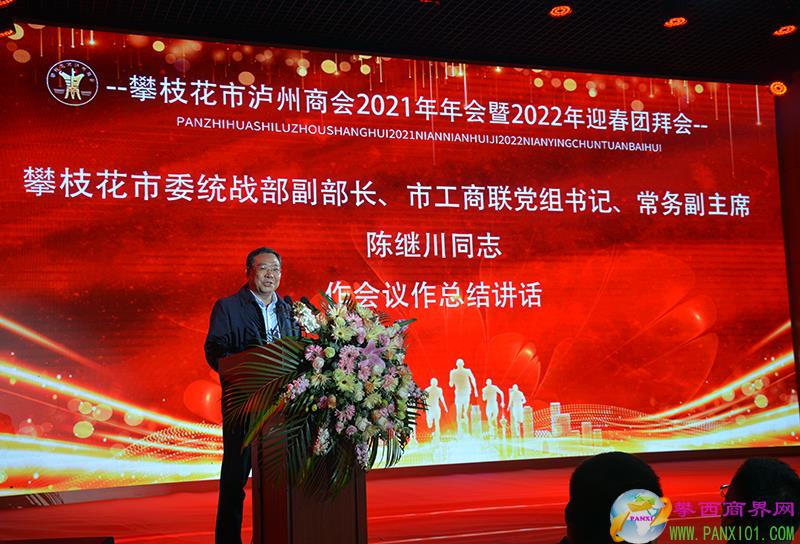 市委統(tǒng)戰(zhàn)部副部長(zhǎng)、市工商聯(lián)黨組書(shū)記、常務(wù)副主席陳繼川出席并講話(huà)。他首先對(duì)獲得表彰表?yè)P(yáng)的先進(jìn)單位、優(yōu)秀會(huì)長(zhǎng)、優(yōu)秀會(huì)員以及考上大學(xué)的會(huì)員子女表示祝賀。對(duì)2020-2021年,市瀘州商會(huì)勇?lián)鐣?huì)責(zé)任,在扶貧攻堅(jiān)、公益事業(yè)、防疫抗震等方面積極捐款捐物、修橋修路所作出的貢獻(xiàn)給予充分肯定。2022年將是機(jī)遇與挑戰(zhàn)并存的一年,他希望市瀘州商會(huì)繼續(xù)按照“政治建會(huì),團(tuán)結(jié)立會(huì),服務(wù)興會(huì),改革強(qiáng)會(huì)”的總體方針,不斷推進(jìn)商會(huì)發(fā)展,在會(huì)員發(fā)展、經(jīng)濟(jì)服務(wù)、維權(quán)服務(wù)等方面做好工作,同時(shí)希望會(huì)員企業(yè)圍繞“三個(gè)圈層”,立足新發(fā)展階段,踐行新發(fā)展理念,融入新發(fā)展格局,不斷推進(jìn)企業(yè)發(fā)展壯大,為攀枝花實(shí)現(xiàn)高質(zhì)量發(fā)展做出積極貢獻(xiàn)。