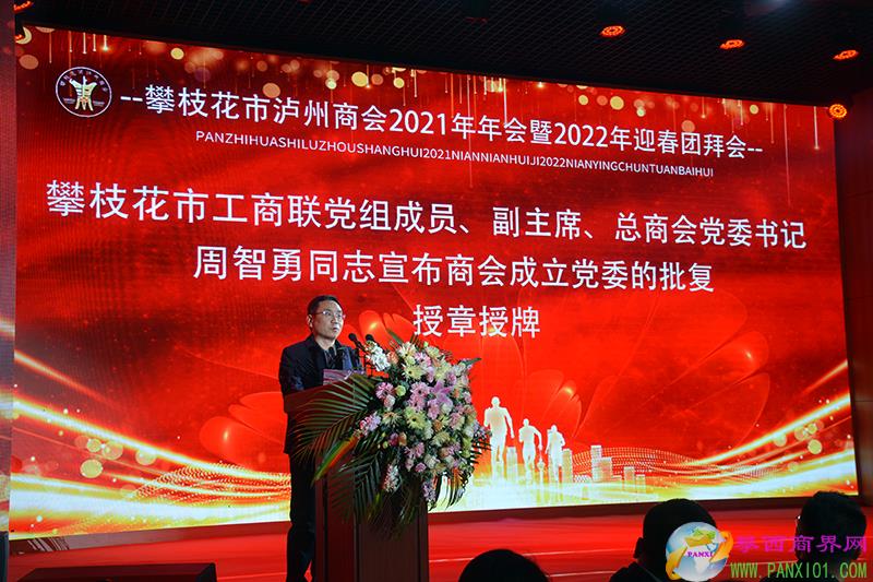 市工商聯(lián)黨組成員、副主席、市總商會(huì)黨委書(shū)記周智勇出席并宣布攀枝花市瀘州商會(huì)成立黨委的批復(fù),同時(shí)為攀枝花市瀘州商會(huì)黨委授章授牌。
