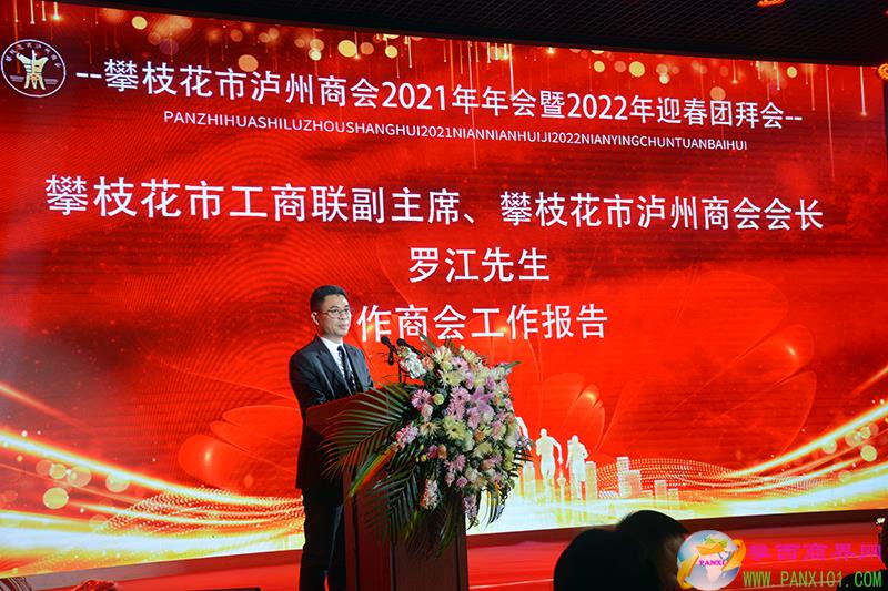 市工商聯(lián)副主席、攀枝花市瀘州商會(huì)會(huì)長(zhǎng)羅江作工作報(bào)告,總結(jié)2020-2021年工作,展望2022年工作,推進(jìn)商會(huì)健康、協(xié)調(diào)發(fā)展。羅江在報(bào)告中概括了商會(huì)工作主要內(nèi)容就是高舉旗幟,始終堅(jiān)持黨的領(lǐng)導(dǎo),牢固樹(shù)立和堅(jiān)持社會(huì)主義方向;不斷加強(qiáng)商會(huì)自身建設(shè),積極為社會(huì)作貢獻(xiàn)。在羅江的帶領(lǐng)下,商會(huì)工作做到了思路清晰,目標(biāo)明確,措施得當(dāng),效果明顯。商會(huì)被全國(guó)工商聯(lián)評(píng)為“四好”商會(huì),省和市評(píng)為先進(jìn)商會(huì),攀枝花市、瀘州市授予抗疫工作突出獎(jiǎng),脫貧攻堅(jiān)先進(jìn)獎(jiǎng),商會(huì)黨支部評(píng)為先進(jìn)黨支部,五個(gè)會(huì)長(zhǎng)、副會(huì)長(zhǎng)、秘書(shū)長(zhǎng)被瀘州市工商聯(lián)評(píng)為優(yōu)秀會(huì)長(zhǎng)、秘書(shū)長(zhǎng),瀘縣縣委、縣政府發(fā)文對(duì)商會(huì)農(nóng)民工工作進(jìn)行了表彰獎(jiǎng)勵(lì)。據(jù)不完全統(tǒng)計(jì),2020-2021年,攀枝花市瀘州商會(huì)會(huì)員為攀瀘兩地捐款捐物、修橋修路、扶貧攻堅(jiān)、公益事業(yè)、防疫、地震等共捐贈(zèng)近2000萬(wàn)元。特別是在疫情中103名會(huì)員短短二天捐款65萬(wàn)元,瀘州地震也是短短一天105名會(huì)員就捐贈(zèng)23萬(wàn)元現(xiàn)金并親自送往地震災(zāi)區(qū),同災(zāi)區(qū)人民站在一起,共渡難關(guān)。