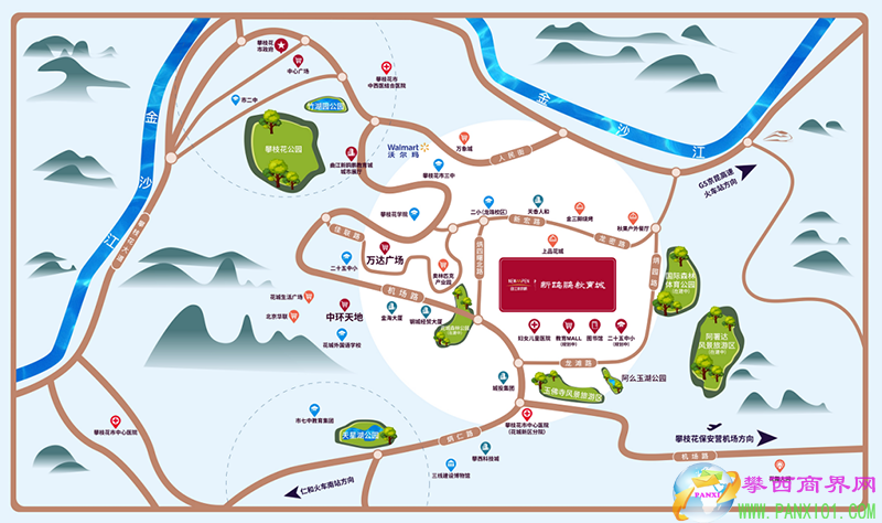 新鷗鵬教育城坐落于炳四區(qū),是中心城區(qū)最后一個千畝大盤。項目西臨城市向南發(fā)展主軸三線大道,北接城市向東發(fā)展主軸攀枝花大道,地理位置得天獨厚。放眼攀枝花主城區(qū)的規(guī)劃,炳三區(qū)目前已無任何土地資源,且其市場幾近飽和。仁和區(qū),三面環(huán)山,向北發(fā)展空間有限。炳四區(qū),以更為純粹低密的高品質(zhì)生態(tài)住區(qū)規(guī)劃,將成為超越花城新區(qū)的未來極具升值潛力的發(fā)展空間、未來人氣最高、配套最全、最具向心力的中心區(qū)域。