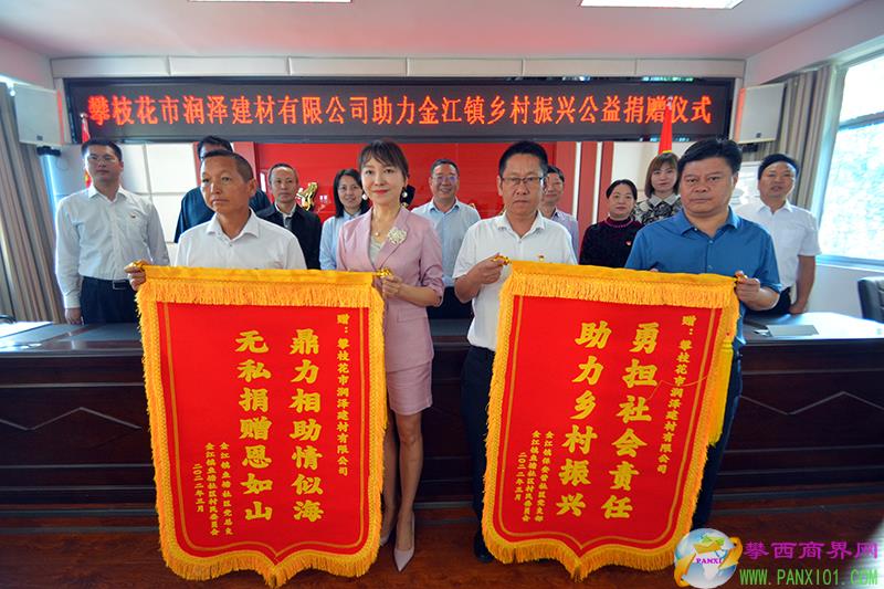 金江鎮(zhèn)領(lǐng)導(dǎo)和受贈(zèng)村村民代表,分別向潤(rùn)澤建材公司回贈(zèng)了牌匾和錦旗。