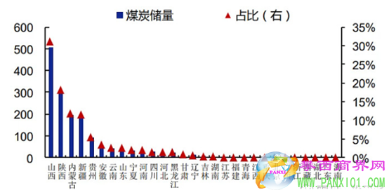 我國煤炭儲量集中于山西、陜西等地(億噸)