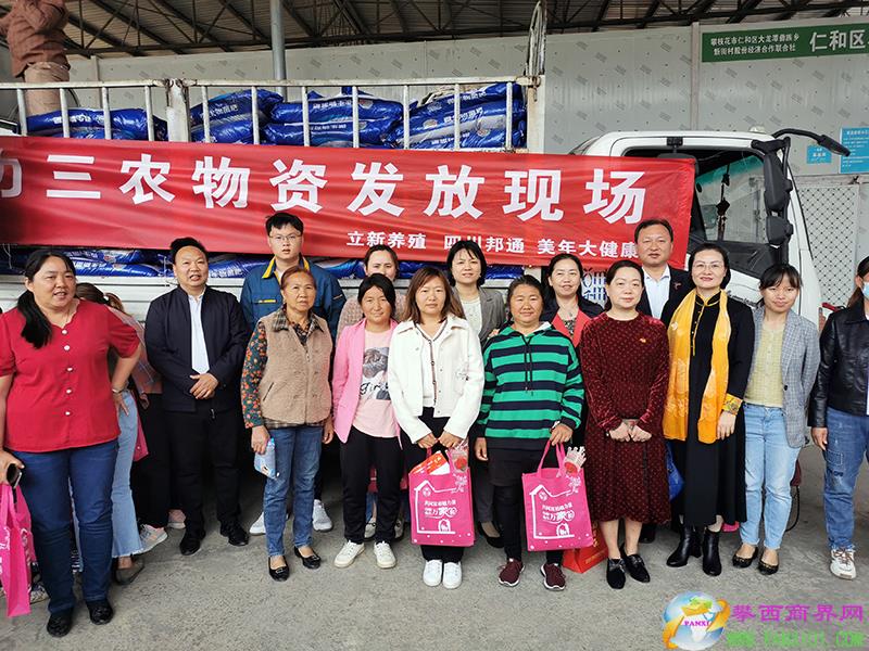 市總商會副會長、市女企業(yè)家聯(lián)誼會會長、攀枝花立新養(yǎng)殖開發(fā)有限公司董事長邢曉艷為參加聯(lián)誼活動的婦女同胞贈送了10噸微生物菌肥;四川邦通農(nóng)業(yè)機械有限公司和攀枝花美年大健康體檢醫(yī)院也分別為婦女們發(fā)放了防塵罩衣、純棉毛巾等物資。