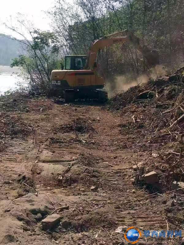 挖掘機(jī)進(jìn)行便道施工以及清表作業(yè)。
