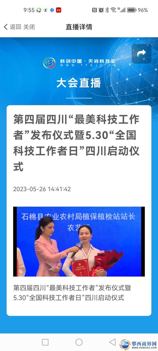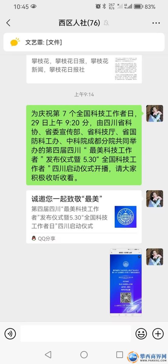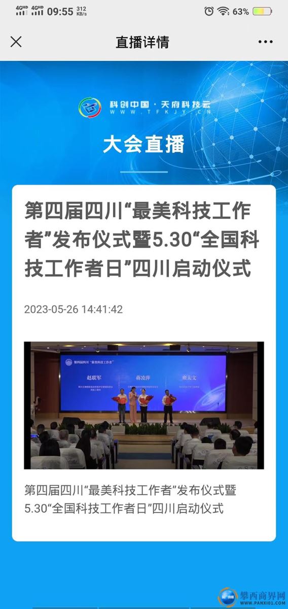攀西商界網(wǎng)報(bào)道(記者 熊毅)5月29日,第四屆四川“最美科技工作者”發(fā)布儀式暨5·30“全國(guó)科技工作者日”四川啟動(dòng)儀式在四川科技館舉行,西區(qū)組織黨政機(jī)關(guān)、街道、學(xué)校、農(nóng)村、社區(qū)、農(nóng)技協(xié)和科普基地實(shí)時(shí)收聽收看了現(xiàn)場(chǎng)直播,向廣大科技工作者表達(dá)最誠(chéng)摯的節(jié)日祝福!