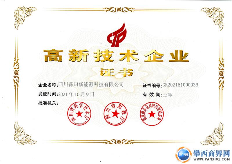 四川森田新能源科技有限公司榮獲高新技術(shù)企業(yè)認(rèn)證。