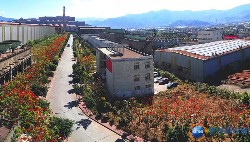 刺桐花盛開的西昌鋼釩熱軋生產(chǎn)線廠區(qū)