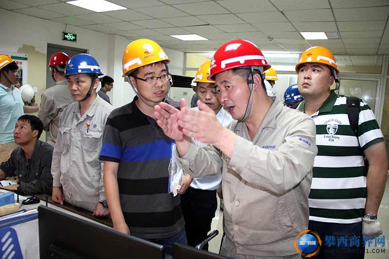陳俊(右二)向一汽大眾專家介紹酸軋聯(lián)合產(chǎn)線工藝流程