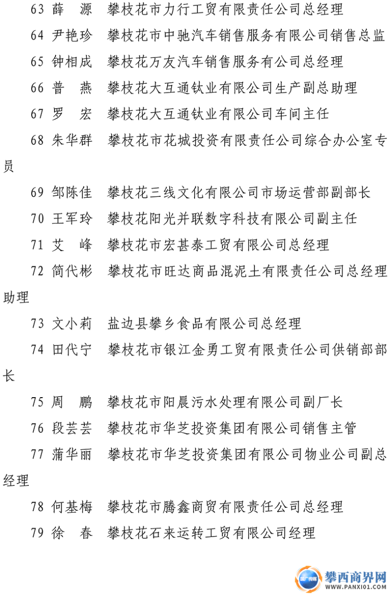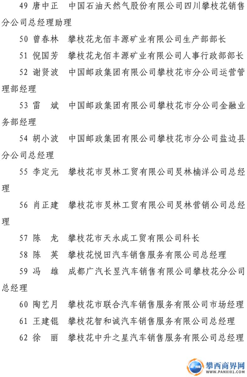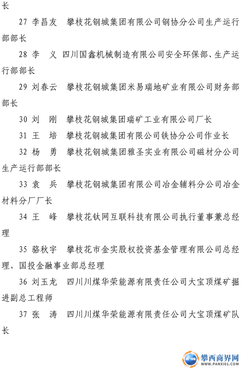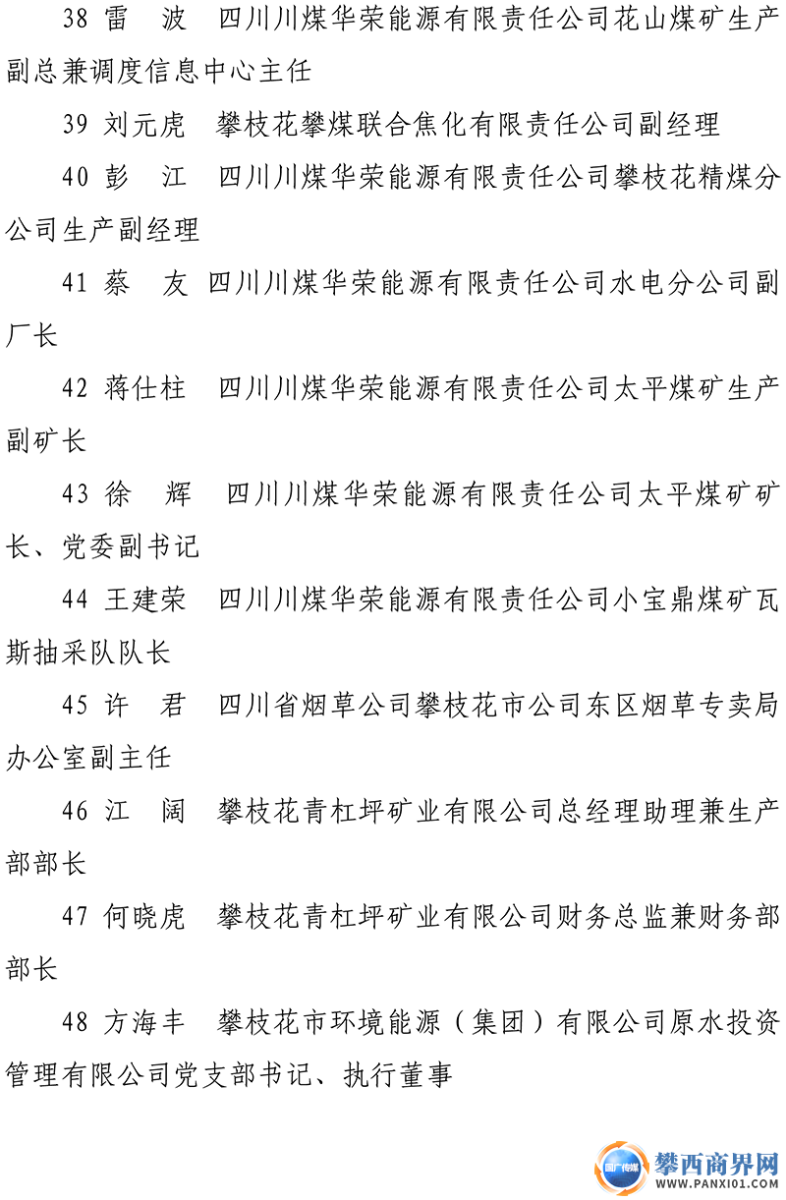 攀枝花第八屆企業(yè)優(yōu)秀基層管理者名單