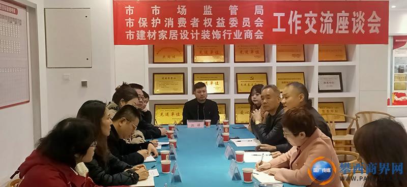 攀西商界網(wǎng)報(bào)道(攀枝花市建材家居設(shè)計(jì)裝飾行業(yè)商會(huì) 供稿)為充分發(fā)揮商會(huì)的橋梁紐帶作用,進(jìn)一步加強(qiáng)權(quán)益保護(hù)工作,促進(jìn)我市建材行業(yè)健康有序發(fā)展。近日,攀枝花市保護(hù)消費(fèi)者權(quán)益委員會(huì)副主任張?jiān)缆适惺袌?chǎng)監(jiān)管局、市保護(hù)消費(fèi)者權(quán)益委員會(huì)、仁和區(qū)市場(chǎng)監(jiān)管局相關(guān)負(fù)責(zé)人一行來(lái)到攀枝花市建材家居設(shè)計(jì)裝飾行業(yè)商會(huì)就維權(quán)工作進(jìn)了實(shí)地調(diào)研,并召開(kāi)工作交流座談會(huì),對(duì)行業(yè)維權(quán)工作進(jìn)行交流座談。