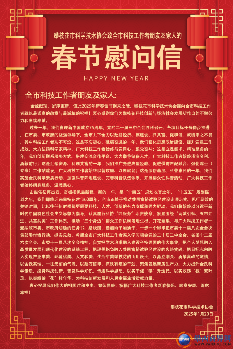 攀枝花市科學(xué)技術(shù)協(xié)會(huì)致全市科技工作者朋友及家人的春節(jié)慰問信