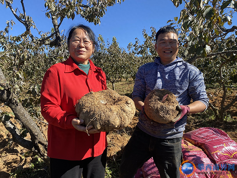 滕志(左一)今日頭條報(bào)道攀枝花魔芋測(cè)產(chǎn)采收