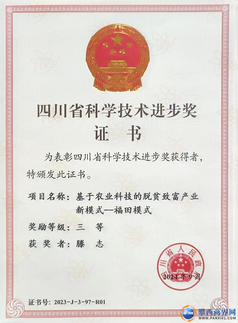 在滕志的辦公室,一張泛黃的論文獎(jiǎng)狀格外醒目——1995年,她的《農(nóng)村達(dá)小康——走農(nóng)工商綜合發(fā)展之路》獲攀枝花市科技論文三等獎(jiǎng)。彼時(shí)的青澀學(xué)子或許未曾想到,這篇論文會(huì)成為她一生的注腳。