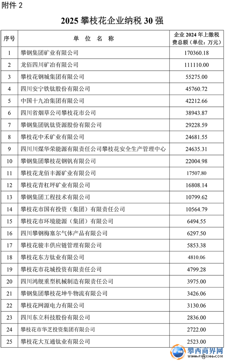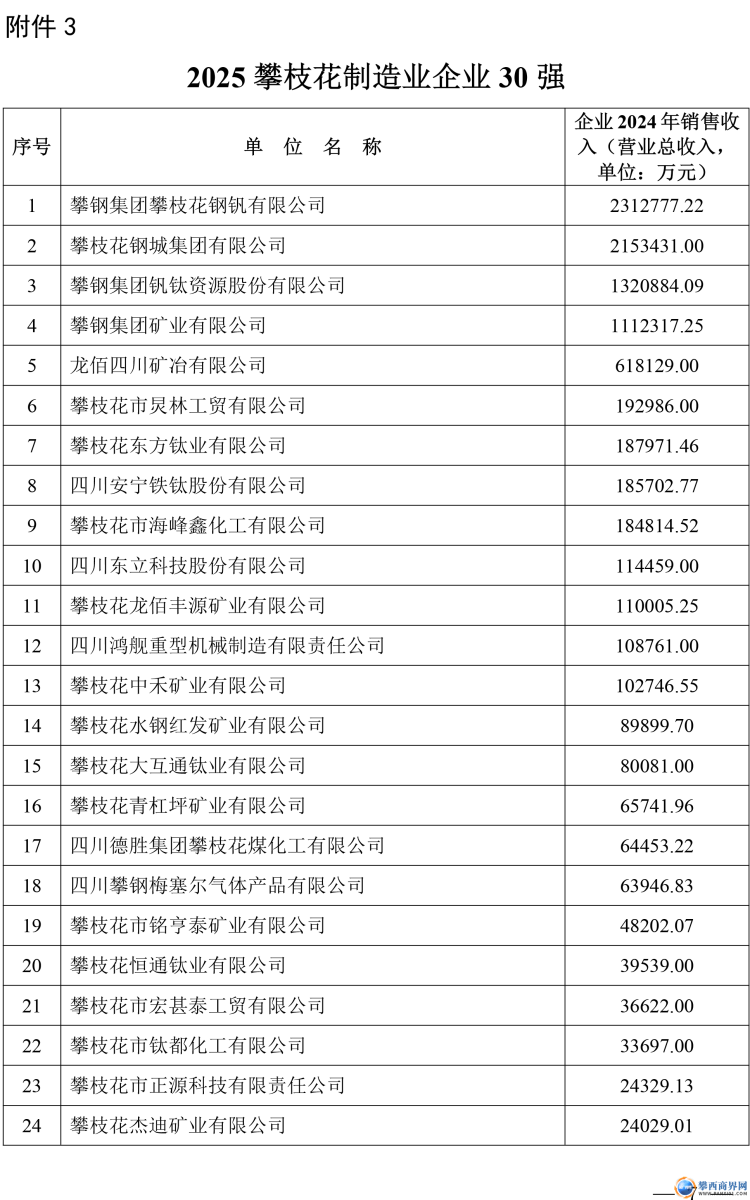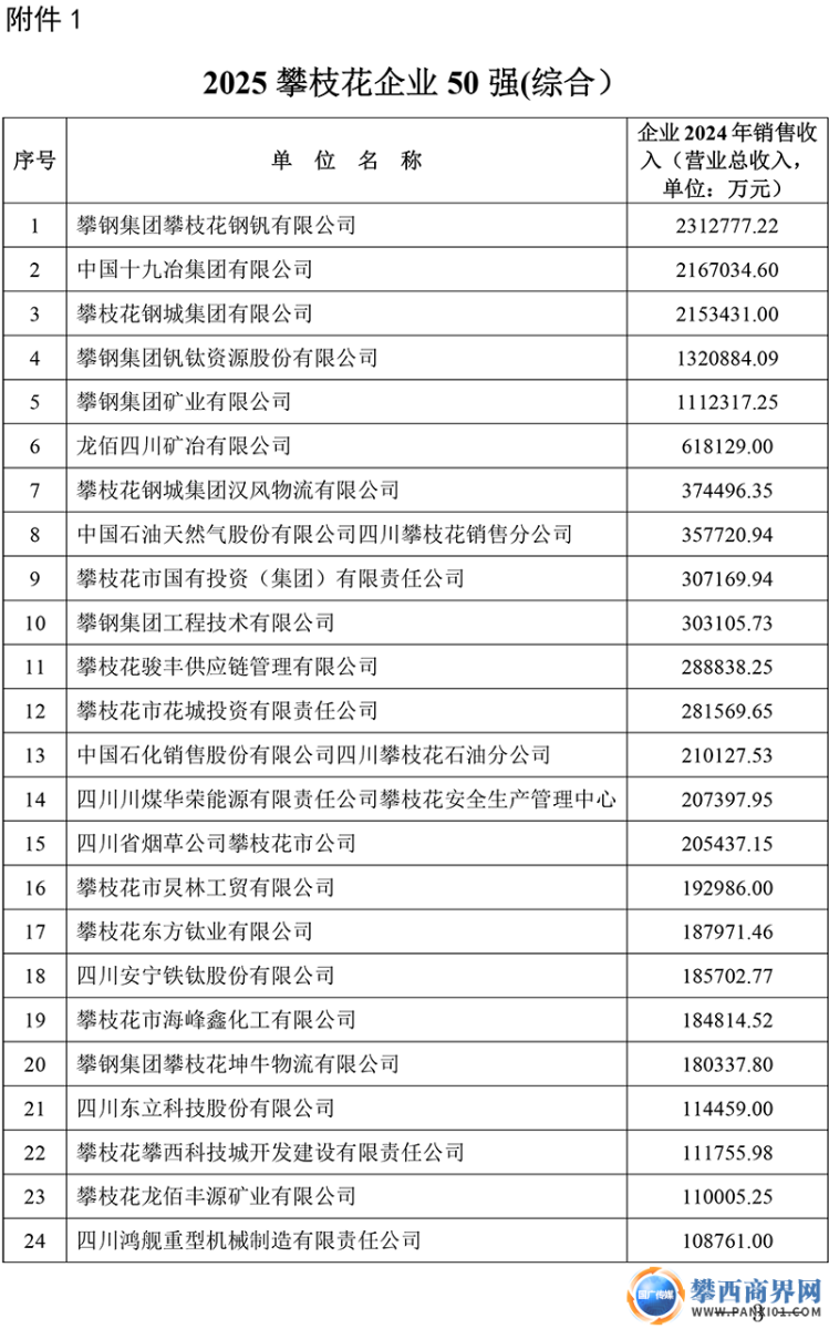 附件:2025攀枝花強(qiáng)勢企業(yè)排序榜單